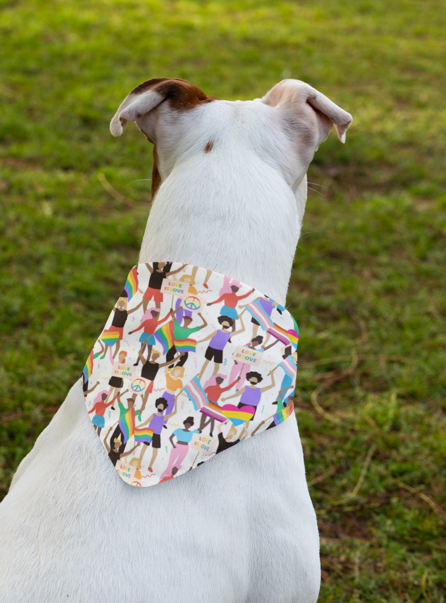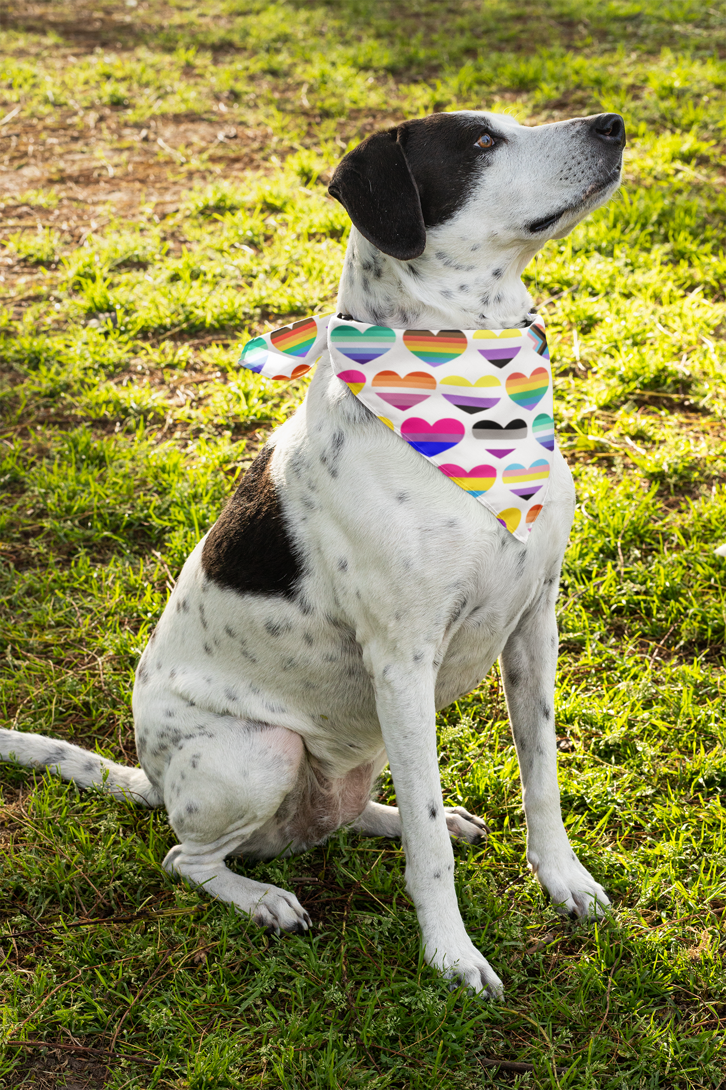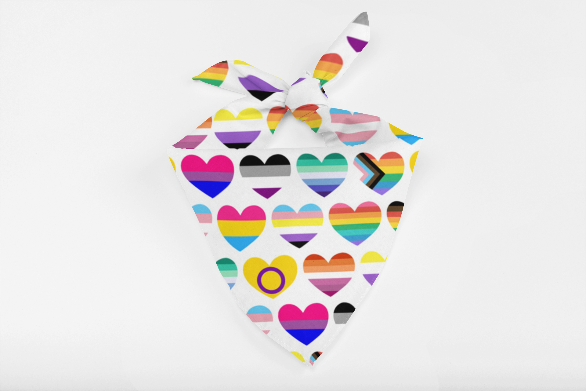 Celebrate love, identity, and joyful expression with our Pride Bandana, featuring two vibrant designs: Pride Hearts and Love Wins. With bold rainbows and heartfelt messages, this bandana lets your pup wear their pride loud and proud.
