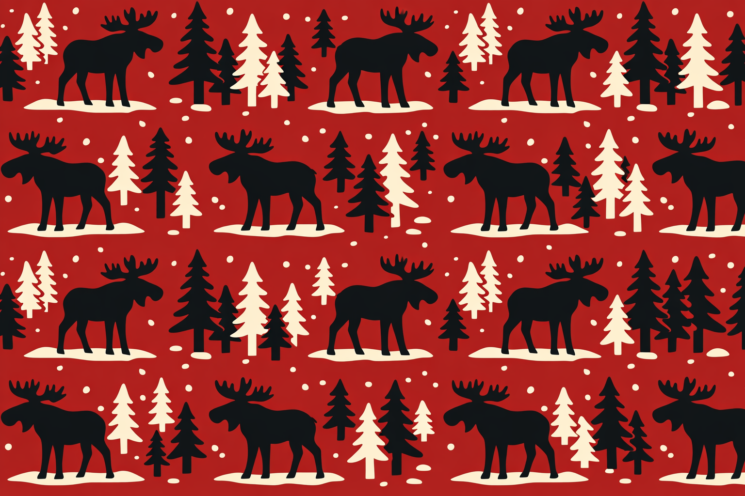 Woodland Moose (Fire Brick) – Bold moose silhouettes and pine trees capture the quiet beauty of the northern woods.